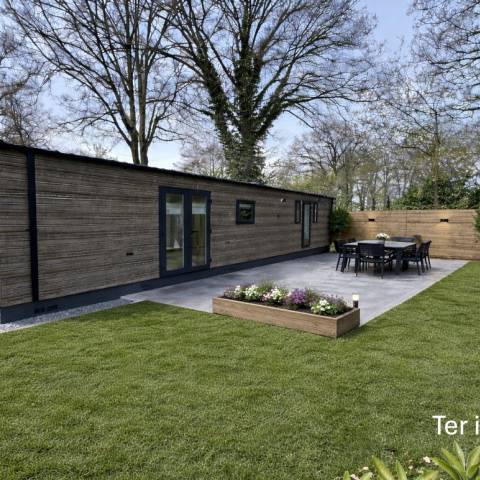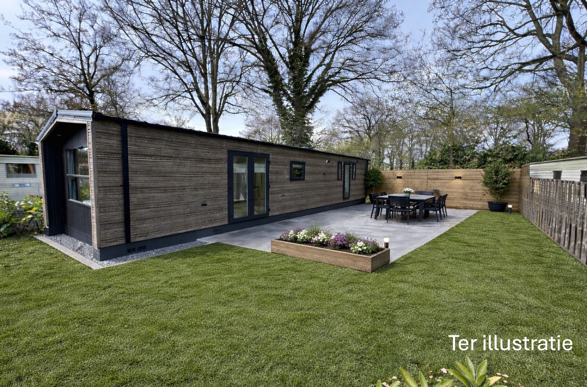 Wat maakt dit chalet uniek? De tuin biedt volop mogelijkheden en kan volledig naar uw wensen worden ingericht. U bepaalt zelf de indeling, het terras en de beplanting – zo creëert u uw ideale buitenruimte.