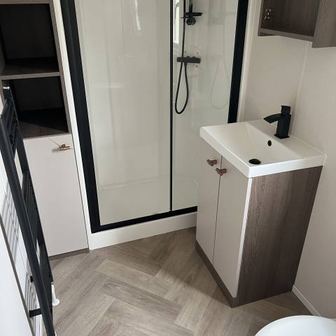 Bent u op zoek naar een splinternieuw chalet waar u nog uw eigen stijl en sfeer aan kunt geven? Dan is dit prachtige 6-persoons chalet precies wat u zoekt!Dit recent geplaatste chalet combineert een moderne uitstraling met comfort en functionaliteit. Dankzij de slimme indeling beschikt u over een ruime en gezellige leefruimte, een complete keuken en comfortabele slaapplaatsen voor het hele gezin. Ideaal voor eigen gebruik, maar ook zeer geschikt voor verhuur.